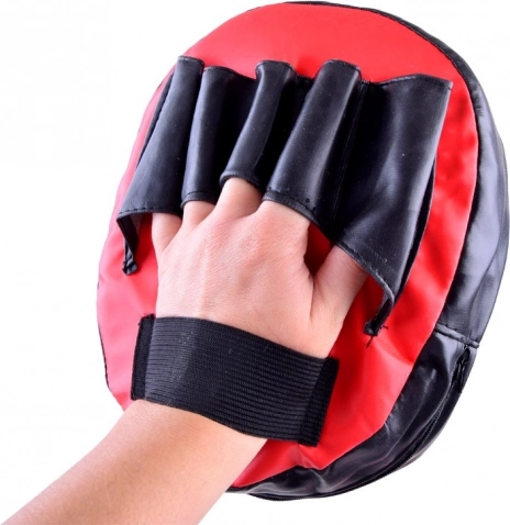 - το άλλο παίρνει την επιφάνεια κρούσης, η οποία έχει άνετες λαβές για τα δάχτυλα και ρυθμιζόμενο λουράκι με βέλκρο. Η επιφάνεια εξασφαλίζει ασφάλεια και άνεση κατά την προπόνηση.