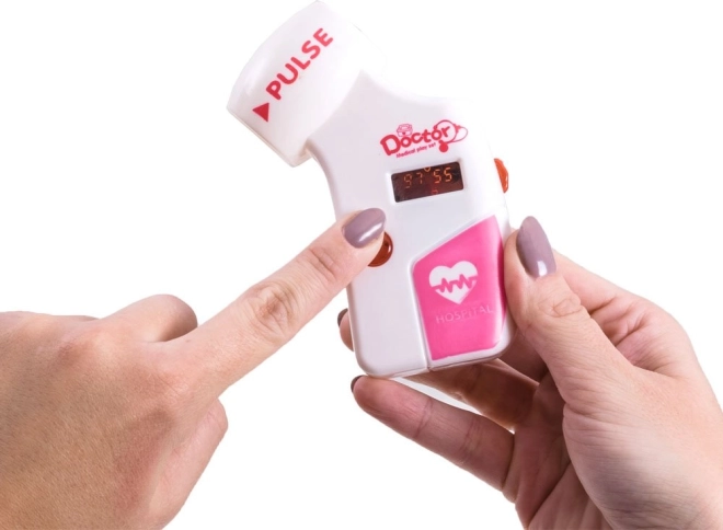 Στηθοσκόπιο με αναβοσβήνουσα καρδούλα, θερμόμετρο και πιεσόμετρο με φωτιζόμενες ενδείξεις, ωτοσκόπιο, σύριγγα, ψαλίδι, σφυράκι και άλλα αξεσουάρ.