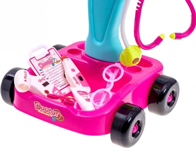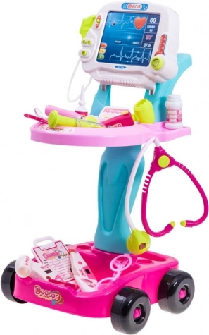 Παιδικό ιατρικό καροτσάκι με πλούσιο σετ εργαλείων για παιχνίδι «γιατρού», που ενισχύει τη δημιουργικότητα, τη μάθηση και τις κοινωνικές δεξιότητες. Περιλαμβάνει πάνελ με φωτεινά και ηχητικά εφέ, στηθοσκόπιο, θερμόμετρο, πιεσόμετρο και άλλα αξεσουάρ. Χάρη στους τροχούς, το καροτσάκι είναι κινητό και εύκολα μετακινήσιμο.