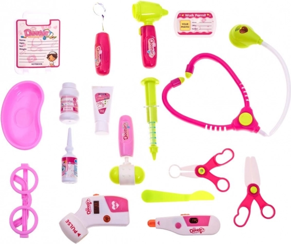 - Ιατρικό καροτσάκι με πάνελ, γυαλιά, στηθοσκόπιο με φως, θερμόμετρο με ρύθμιση και φωτισμό, ωτοσκόπιο με φως, πιεσόμετρο με ρύθμιση και φωτισμό, νευρολογικό σφυράκι, σύριγγα, καθρεφτάκι με φως, 2× ψαλίδι, νυστέρι (παιχνίδι), μπολ, απομίμηση απολυμαντικής κρέμας, απομίμηση οφθαλμικών σταγόνων, δοχείο φαρμάκων (απομίμηση), καρτελάκι ονόματος γιατρού, κάρτα ασθενούς