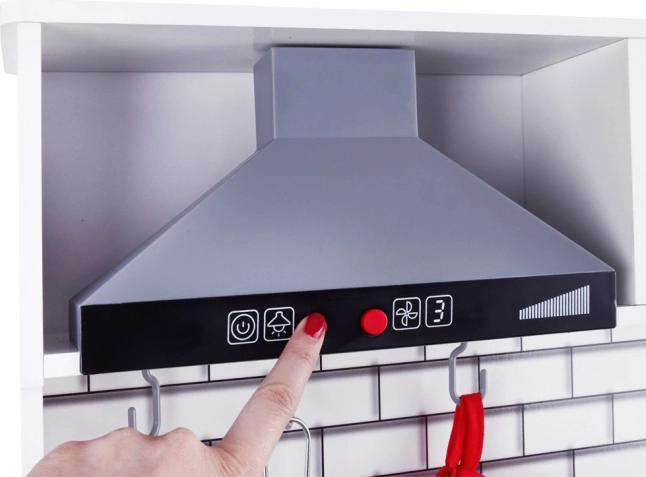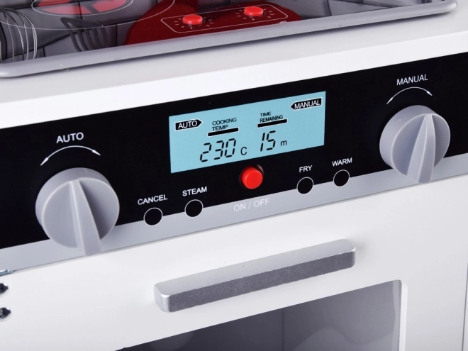 Η κουζίνα είναι εξοπλισμένη με φωτεινά και ηχητικά εφέ που προσφέρουν στα παιδιά ρεαλιστική αίσθηση μαγειρέματος.
