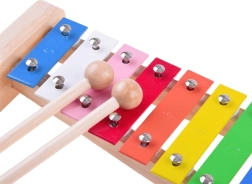 Το ξυλόφωνο με τα ουράνια τόξα μεταλλικών πλήκτρων επιτρέπει στα παιδιά να εξερευνήσουν μελωδίες και να αναπτύξουν το μουσικό τους αυτί. Είναι ιδανικό για την εκμάθηση βασικών μουσικών αρχών.