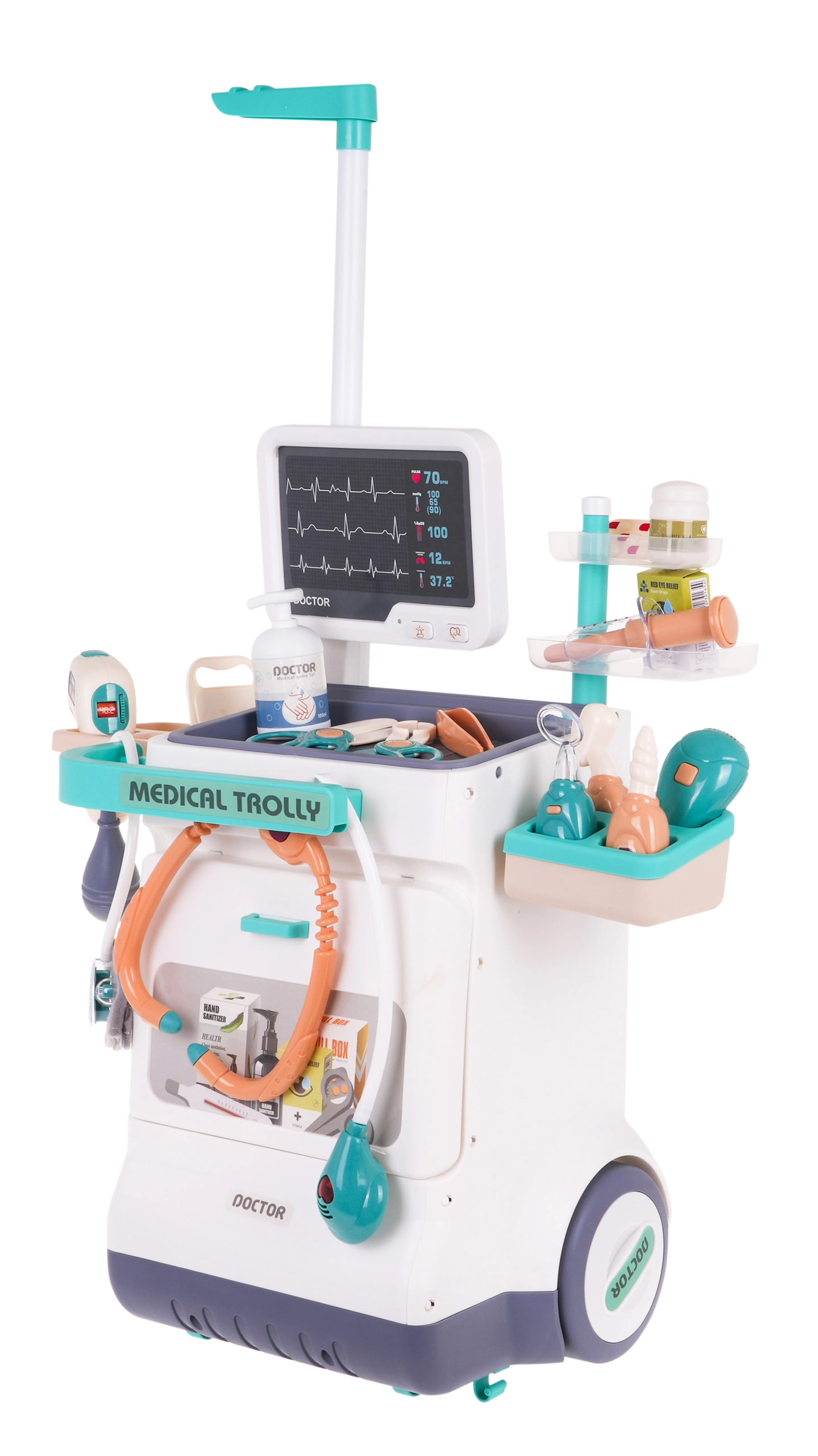 Το διαδραστικό ιατρικό καροτσάκι για παιδιά είναι η σωστή επιλογή για κάθε μικρό γιατρό. Με αυτό το πλούσιο σετ παιχνιδιού τα παιδιά μπορούν εύκολα να υποδυθούν τον γιατρό, τον ειδικό ή τον οδοντίατρο, ενισχύοντας τη φαντασία και τη δημιουργικότητά τους.
