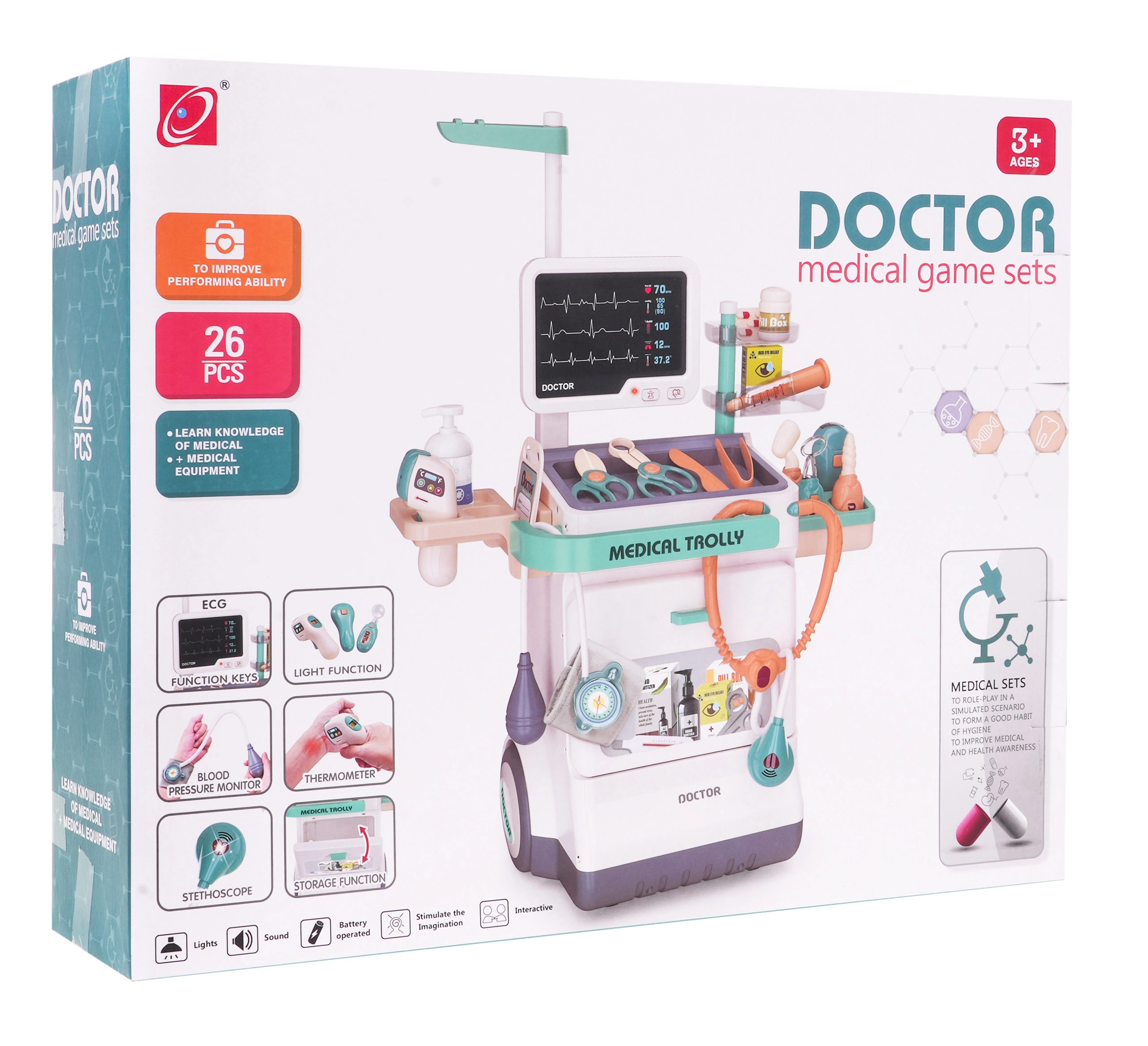 Αυτό το διαδραστικό ιατρικό καροτσάκι είναι το ιδανικό σετ παιχνιδιού που επιτρέπει στα παιδιά σας να γίνουν γιατροί. Περιλαμβάνει σετ 26 ιατρικών αξεσουάρ, όπως στηθοσκόπιο, θερμόμετρο και συσκευή ΗΚΓ, προσφέροντας ρεαλιστική και διασκεδαστική εμπειρία παιχνιδιού.