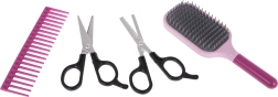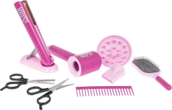 Περιλαμβάνεται επίσης βάση για το σεσουάρ για οργανωμένη αποθήκευση και μια σειρά από απαραίτητα αξεσουάρ: κλασικό ψαλίδι, ψαλίδι αραίωσης, χτένα και βούρτσα. Χάρη στην ασφαλή κατασκευή, το σετ είναι ιδανικό για παιδιά από 3 ετών και συμβάλλει στην ανάπτυξη της λεπτής κινητικότητας, της φαντασίας και των κοινωνικών δεξιοτήτων.