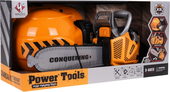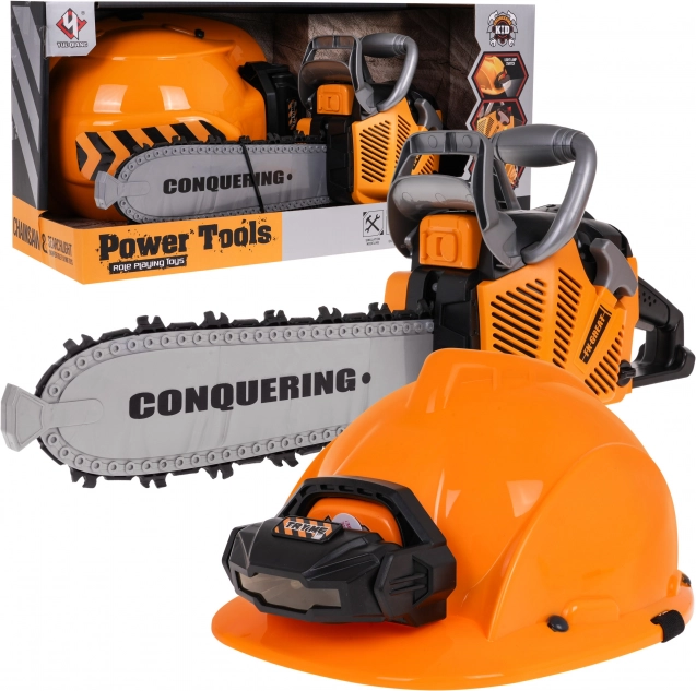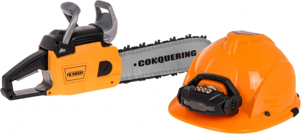 Διαδραστικό σετ μηχανικού πριονιού με ηχητικά εφέ και κράνος με φακό, κατάλληλο για παιδιά από 3 ετών. Το πριόνι είναι απολύτως ασφαλές για τα παιδιά. Είναι κατασκευασμένο από πλαστικό υψηλής ποιότητας και δεν έχει αιχμηρές άκρες. Η αλυσίδα είναι από καουτσούκ. Εκκινείτε το πριόνι τραβώντας το κορδόνι εκκίνησης και θα ακούσετε τον ήχο του κινητήρα που ξεκινά. Για να θέσετε σε κίνηση την αλυσίδα, πατήστε και κρατήστε πατημένο το κάτω κουμπί στη χειρολαβή. Η αλυσίδα αρχίζει να περιστρέφεται και παράγει ήχο κοπής. Το σετ περιλαμβάνει κράνος με ρυθμιζόμενο φως και ελαστικό ιμάντα κάτω από το πηγούνι. Το πριόνι τροφοδοτείται από 3 μπαταρίες τύπου AAA 1,5V, οι μπαταρίες δεν περιλαμβάνονται. Το κράνος τροφοδοτείται από 3 μπαταρίες τύπου AG13, οι μπαταρίες περιλαμβάνονται. .Λειτουργίες σετ: .- ηχητικά εφέ (εκκίνηση κινητήρα, ήχοι κοπής), .- φωτεινά εφέ - φως στο κράνος, λυχνία LED στο μπροστινό μέρος του πριονιού, .- περιστρεφόμενη λαστιχένια αλυσίδα. |