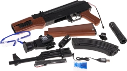 Το παιχνίδι είναι άνετο και ομαλό χάρη στην μπαταρία 3,7 V που φορτίζει μέσω καλωδίου USB. Περιλαμβάνονται επίσης προστατευτικά γυαλιά για ασφαλές παιχνίδι, αποσπώμενος γεμιστήρας, ρύγχος/σιγαστήρας και πρακτικός ιμάντας μεταφοράς. Ιδανικό για κήπο, παιδική χαρά και action role-play.