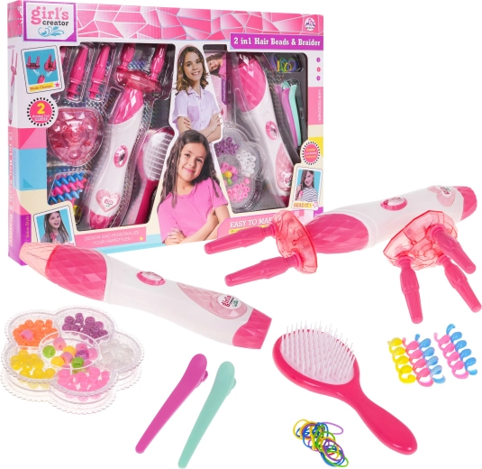 Ανακαλύψτε έναν διασκεδαστικό τρόπο για να δημιουργείτε πρωτότυφα χτενίσματα! Αυτό το mega σετ 2 σε 1 για πλέξιμο κοτσιδιών και διακόσμηση μαλλιών με χάντρες είναι ιδανικό για παιδιά από 5 ετών. Περιλαμβάνει δύο συσκευές – ένα ηλεκτρικό μηχάνημα πλεξίματος και έναν εφαρμοστή χαντρών χωρίς μπαταρίες, καθώς και χρωματιστές χάντρες, λαστιχάκια, τσουλούφες/κλιπ και βούρτσα. Η εύκολη χρήση και τα πλούσια αξεσουάρ ενισχύουν την δημιουργικότητα και τη λεπτή κινητικότητα.