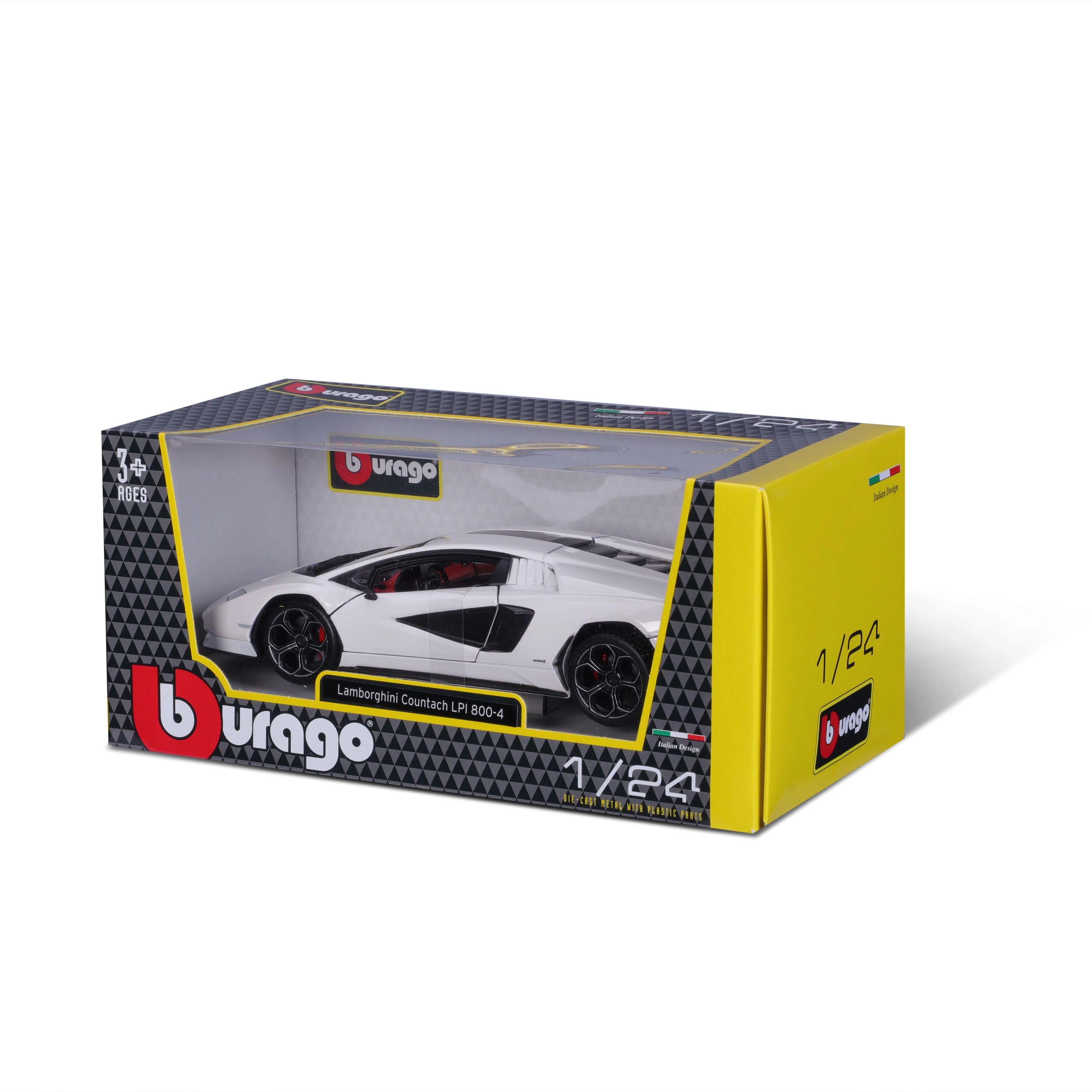 Προσεγμένο μοντέλο Lamborghini Countach LPI 800-4 σε κλίμακα 1:24 από τη Bburago, που θα ενθουσιάσει συλλέκτες και μικρούς φίλους. Διαθέτει ανοιγόμενες πόρτες, κινούμενους τροχούς και πιστές λεπτομέρειες εσωτερικού σε κομψό λευκό χρώμα. Κατάλληλο για παιδιά από 3 ετών.