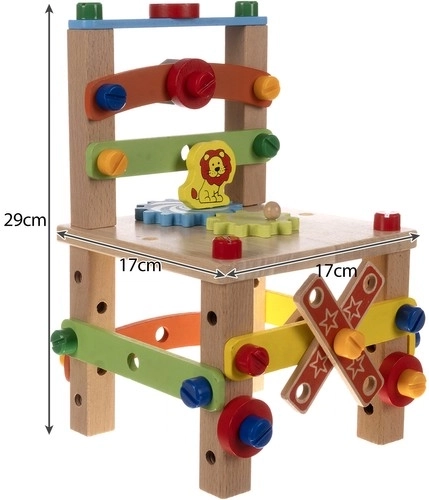 Προδιαγραφές: Παιδική καρέκλα με διαστάσεις 29 x 17 x 17 cm, που αποτελεί όχι μόνο παιχνίδι αλλά και λειτουργικό έπιπλο για το σπίτι σας. Το πλήρες σετ περιλαμβάνει όλα τα απαραίτητα για τη συναρμολόγηση.