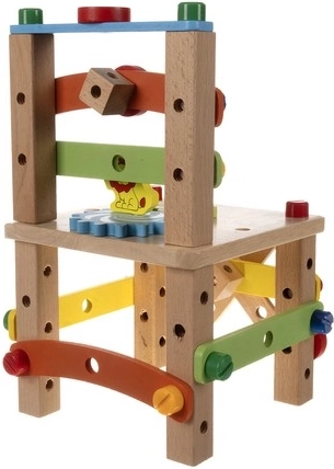 Η καρέκλα παραδίδεται σε κομμάτια που μπορούν να συναρμολογηθούν εύκολα με τα παρεχόμενα εργαλεία. Έτσι τα παιδιά μπορούν να δημιουργήσουν το δικό τους έργο.