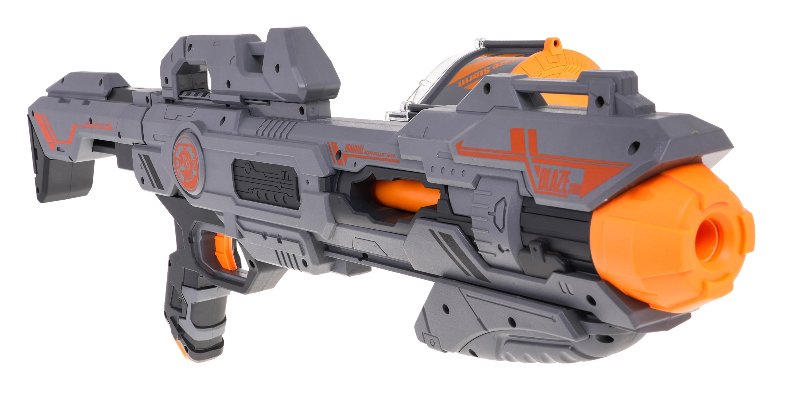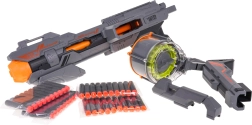 Σας παρουσιάζουμε τη Mega Blaze Storm γκρι καραμπίνα, ιδανική επιλογή για παιδιά και νέους που αναζητούν διασκέδαση σε στυλ sci-fi. Το παιχνίδι διαθέτει 40 σφαίρες που τοποθετούνται εύκολα στο πλαϊνό γεμιστήρα. Η καραμπίνα προσφέρει: