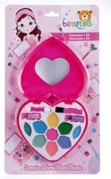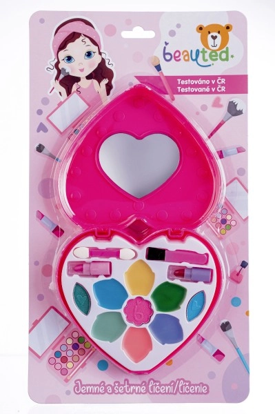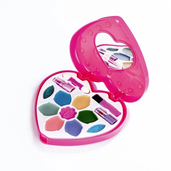 Το σετ καλλυντικών είναι σχεδιασμένο σε σχήμα καρδιάς με διάφανο καπάκι και καθρέφτη, ενθαρρύνοντας τη δημιουργικότητα και μια στιλάτη εμπειρία.