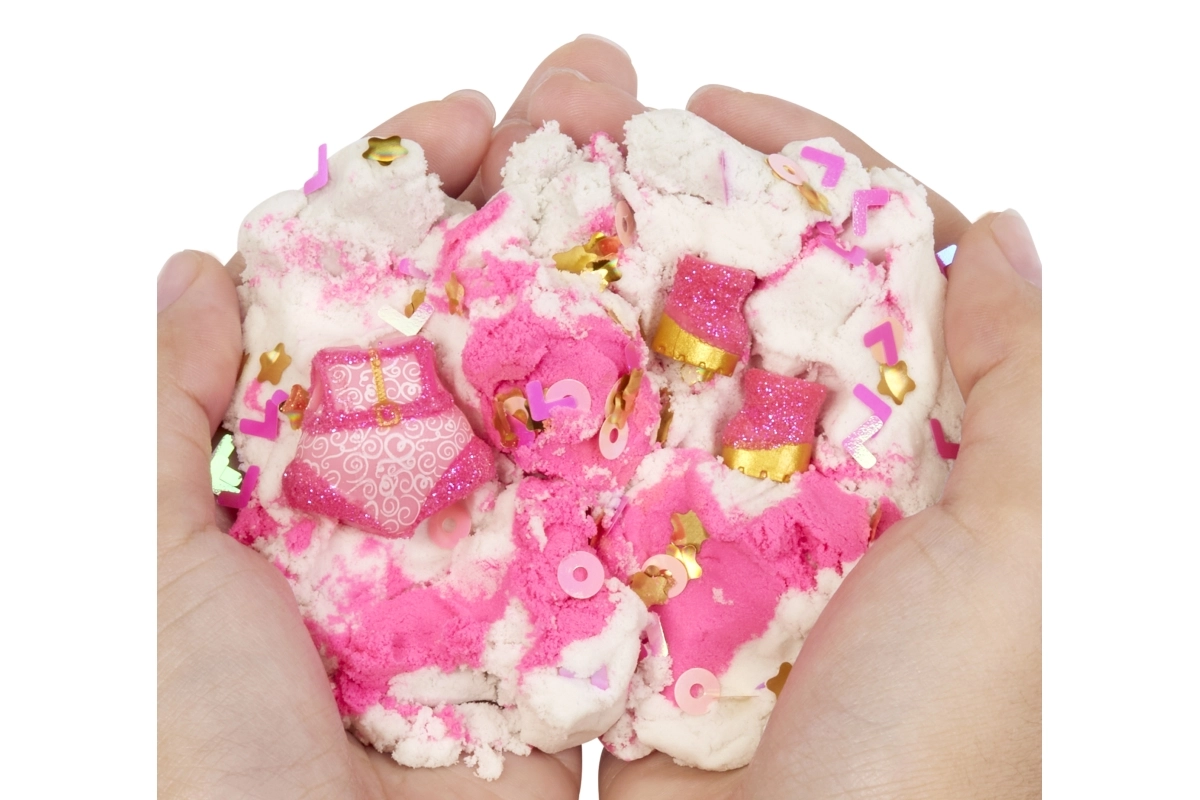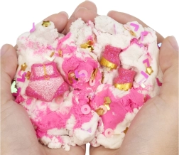 Ροζ και λευκή κινητική άμμος επιτρέπουν στα παιδιά να δημιουργούν και να διαμορφώνουν σχήματα σύμφωνα με τη φαντασία τους. Η άμμος περιλαμβάνει επίσης μικρά διακοσμητικά στοιχεία.