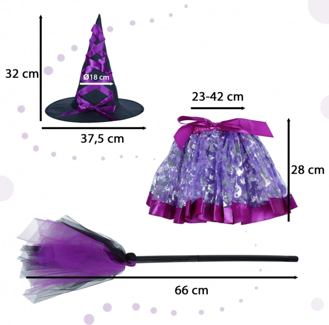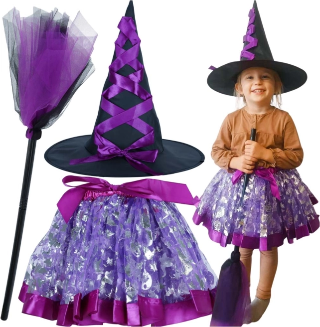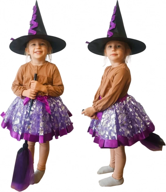 Ντύστε το παιδί σας με αυτό το γοητευτικό σετ στολής μάγισσας, που περιλαμβάνει διακοσμητικό καπέλο, μωβ φούστα με ελαστική μέση και μοναδική σκούπα. Η στολή είναι ιδανική για σχολικά καρναβάλια, θεματικές εκδηλώσεις ή για καθημερινό παιχνίδι στο σπίτι.