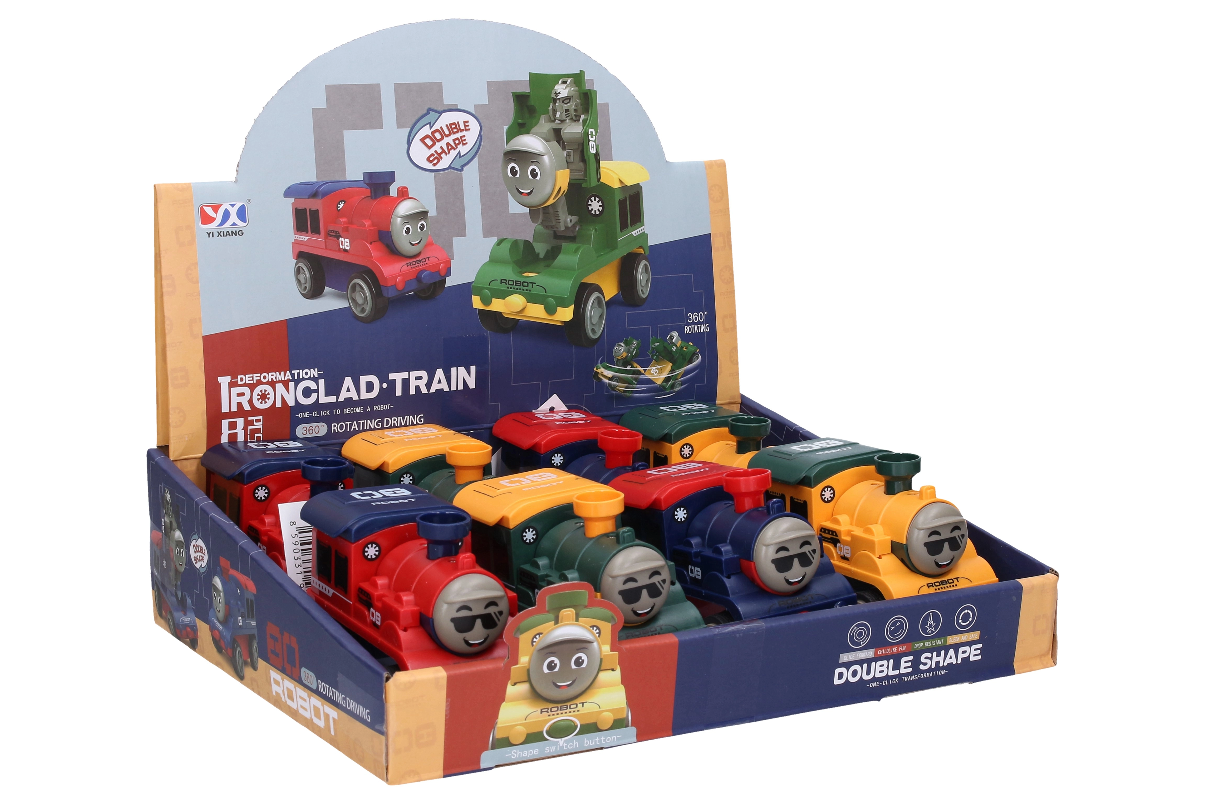 Διασκεδαστικό παιχνίδι για παιδιά – αυτορομπότ τρενάκι μήκους 11 cm που συνδυάζει τον κόσμο των τρένων και των ρομπότ. Προσφέρει 4 χρωματικές εκδοχές (κόκκινο, κίτρινο, μπλε, πράσινο) και είναι ιδανικό για δημιουργικό παιχνίδι και ανάπτυξη φαντασίας.