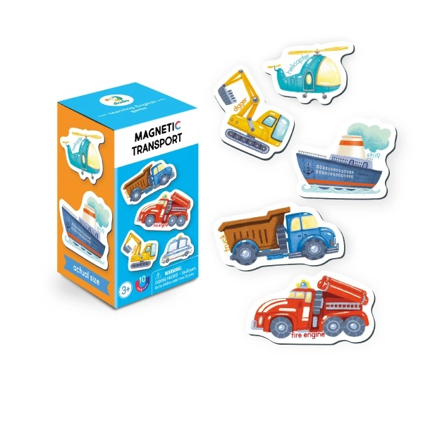 Μαγνητικό παιχνίδι Μεταφορές είναι ένα ιδανικό εκπαιδευτικό βοήθημα για την εκμάθηση αγγλικών, που συνδυάζει διασκέδαση και μάθηση. Χάρη στη μορφή του βοηθά τα παιδιά να μάθουν τα αγγλικά ονόματα των οχημάτων με έναν ελκυστικό τρόπο.