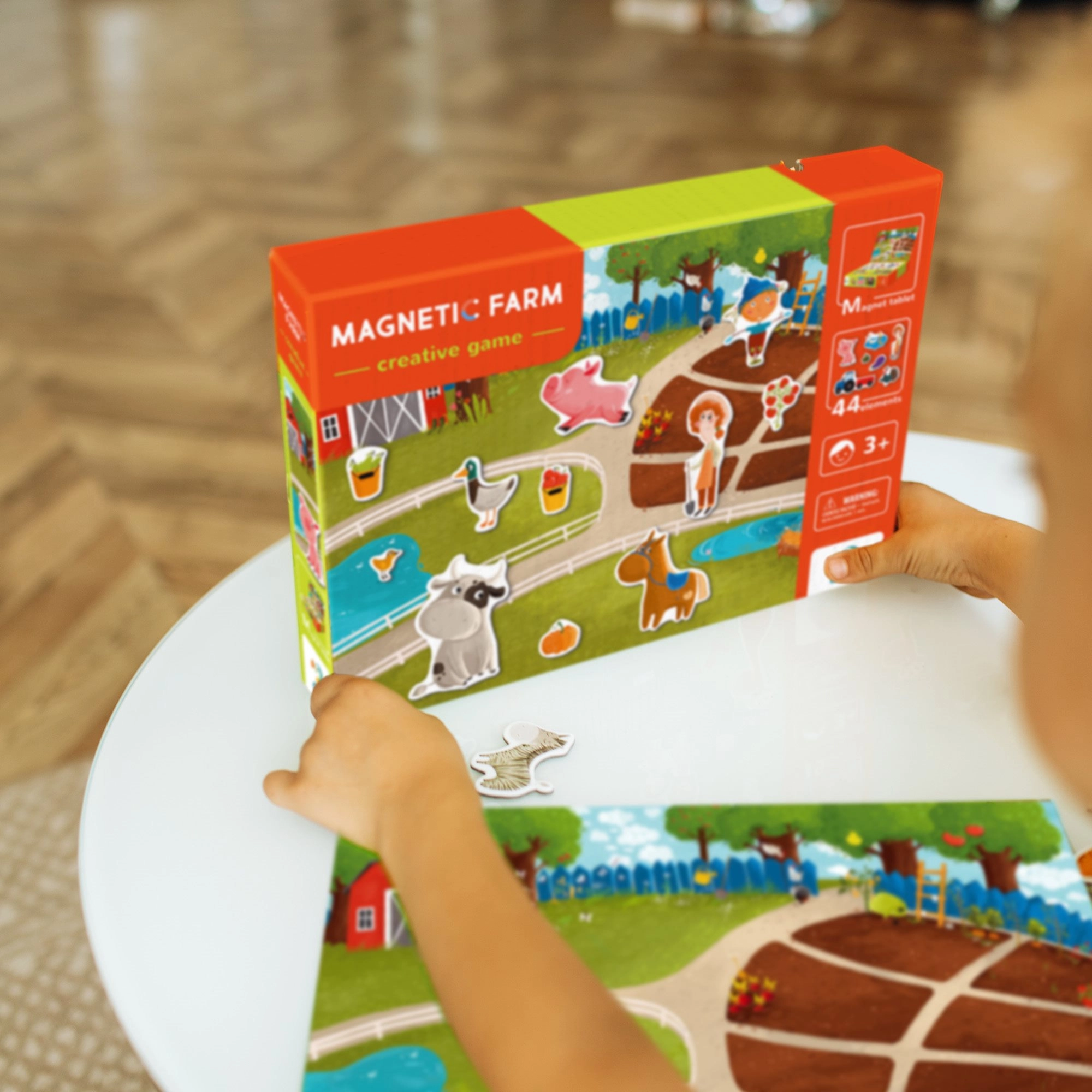 Χάρη στην φορητή κατασκευή και το κουτί που λειτουργεί ως βάση, το παιχνίδι χρησιμοποιείται εύκολα οπουδήποτε – στο σπίτι, στο νηπιαγωγείο και στα ταξίδια. Τα ποιοτικά μαγνητικά κομμάτια κρατιούνται καλά και είναι ιδανικά για τα μικρά παιδικά χέρια.