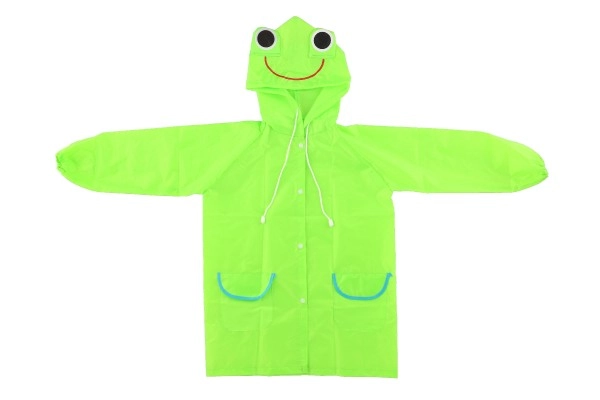 Το αδιάβροχο έχει χαρούμενο βατραχίσιο σχέδιο με μεγάλα μάτια στην κουκούλα, κάνοντας τη χρήση του διασκεδαστική για κάθε παιδί.