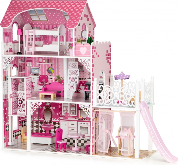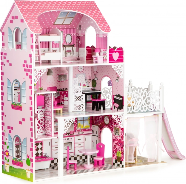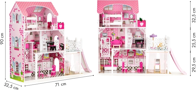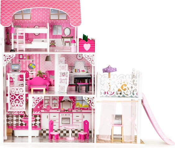 Το κουκλόσπιτο ECOTOYS είναι ένας υπέροχος χώρος για όλες τις μικρές λάτρεις του φανταστικού παιχνιδιού. Προσφέρει 3 ανεξάρτητα επίπεδα και συνολικά 7 δωμάτια, που μιμούνται άψογα ένα πραγματικό σπίτι. Κάθε δωμάτιο έχει διαφορετικό στιλ, επιτρέποντας στα παιδιά να παίξουν τους διακοσμητές και να τοποθετήσουν τα έπιπλα σύμφωνα με τη φαντασία τους.