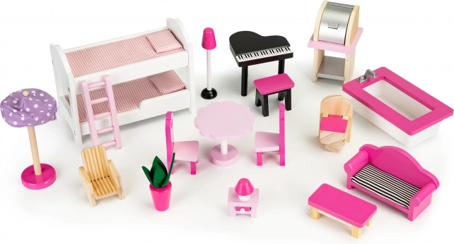Περιλαμβάνεται σετ 16 τεμαχίων επίπλων, όπως κρεβατάκι, πιάνο, τραπέζι και άλλα στοιχεία, που επιτρέπουν ελεύθερη διαρρύθμιση.