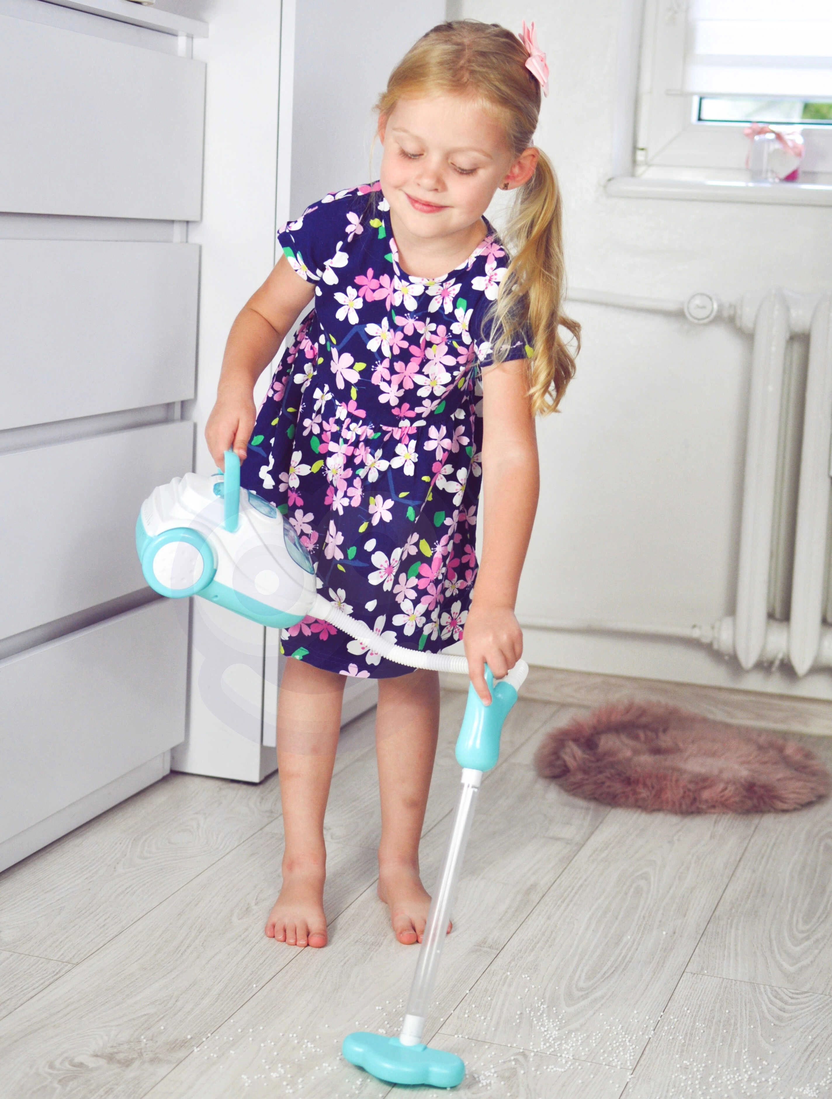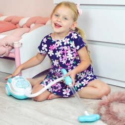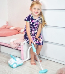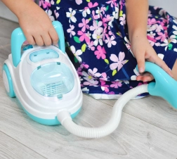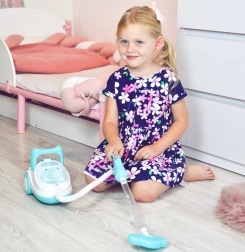 Αυτή η μπλε-λευκή παιδική σκούπα μιμείται πιστά μια πραγματική συσκευή – με την ενεργοποίηση φωτίζει, παράγει ρεαλιστικούς ήχους και, χάρη στη λειτουργία αναρρόφησης, μπορεί να ρουφήξει ακόμη και τις παρεχόμενες μπαλίτσες φελιζόλ. Είναι ιδανική για παιχνίδι ρόλων, καλλιεργεί την υπευθυνότητα και με παιχνιδιάρικο τρόπο μαθαίνει τα παιδιά να διατηρούν την τάξη.