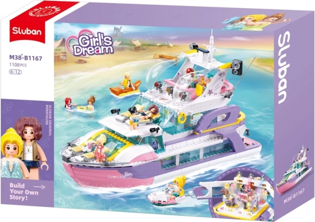 Ξεκινήστε ένα ταξίδι γεμάτο φαντασία με το Sluban κοριτσίστικο όνειρο γιοτ. Αυτό το σετ προσφέρει: