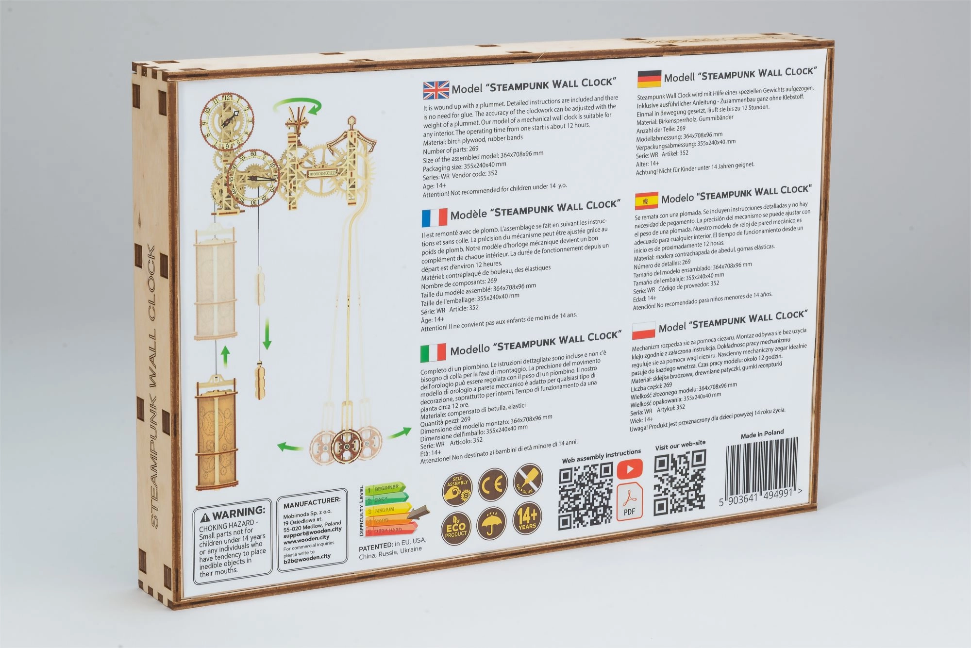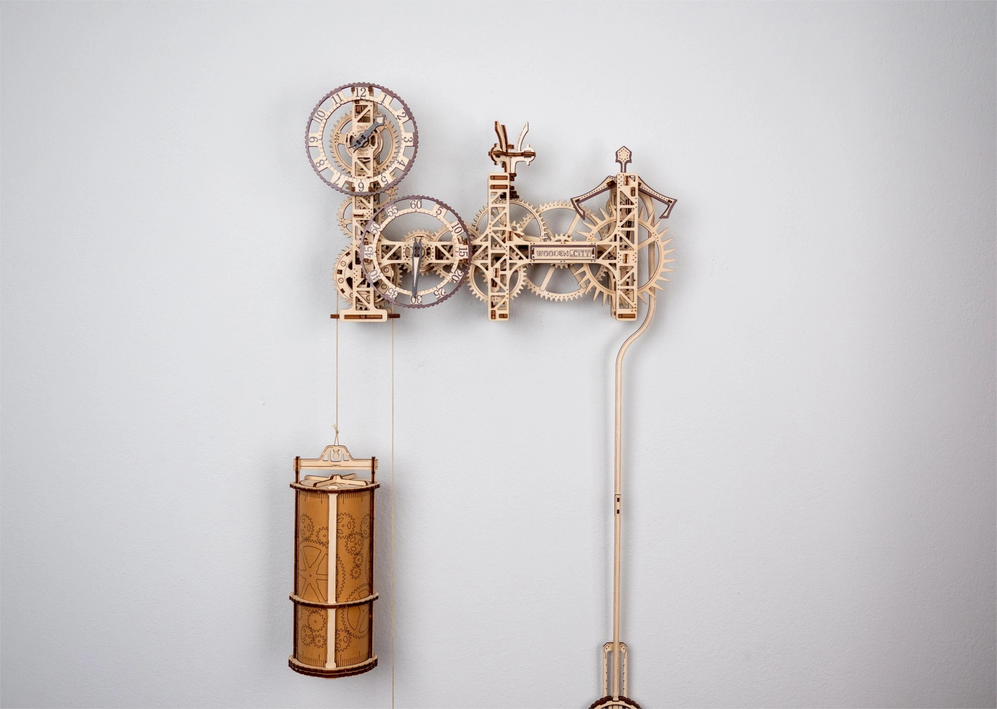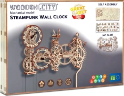 Ανακαλύψτε τον συνδυασμό επιστήμης και τέχνης στο ξύλινο 3D μοντέλο επιτοίχιου ρολογιού STEAMPUNK WOODEN CITY. Συναρμολογείτε 269 με ακρίβεια κομμένα κομμάτια από σημύδινο κόντρα πλακέ σε μια πλήρως λειτουργική μηχανική μηχανή με εκκρεμές και ρύθμιση λειτουργίας. Μετά το κούρδισμα, το ρολόι λειτουργεί αξιόπιστα έως και 12 ώρες και γοητεύει κάθε λάτρη του design και της τεχνικής.