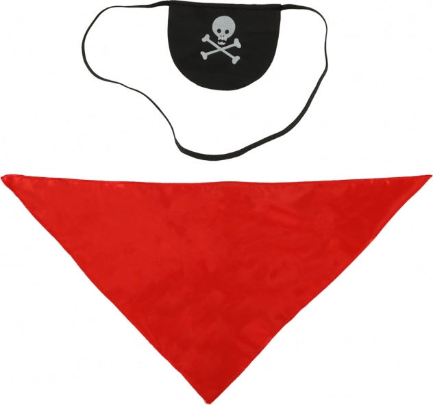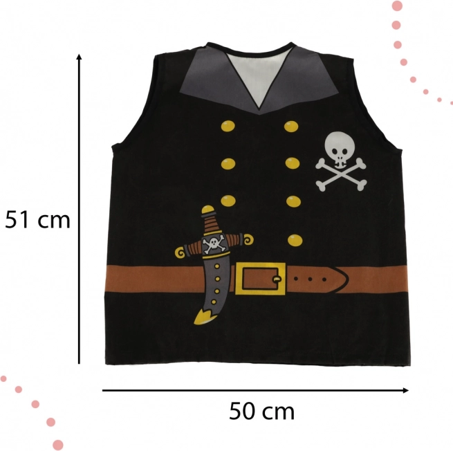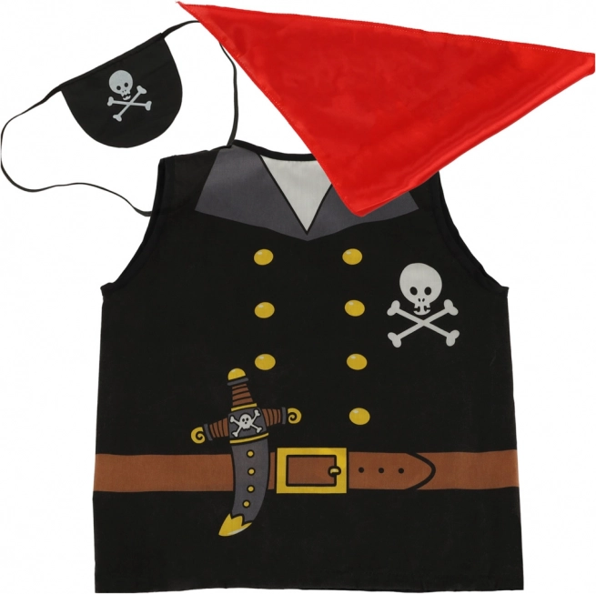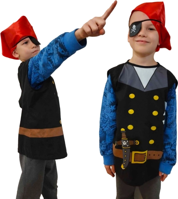 Το κοστούμι περιλαμβάνει βασικά στοιχεία όπως γιλέκο, μαντίλι και κάλυμμα ματιού, που προσδίδουν αυθεντική πειρατική εμφάνιση.
