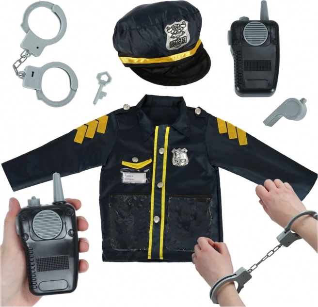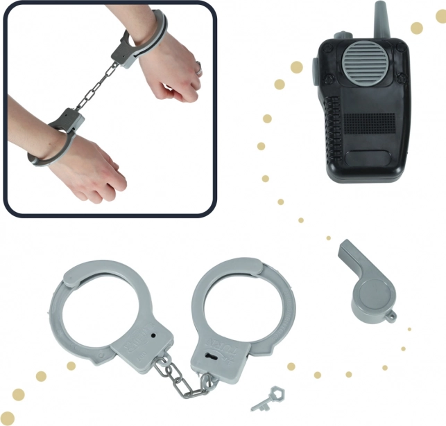 Περιλαμβάνει ασύρματο, χειροπέδες, κλειδιά και σφυρίχτρα, επιτρέποντας ρεαλιστικό παιχνίδι ρόλων και διασκέδαση.