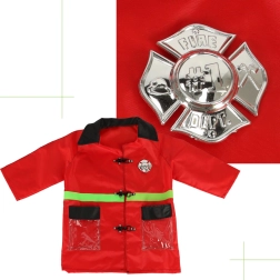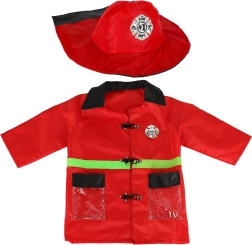 Η παιδική στολή περιλαμβάνει μπουφάν, σχεδιασμένο ώστε να μοιάζει με αληθινό πυροσβεστικό μπουφάν, χάρη στο κόκκινο χρώμα και τα πράσινα ανακλαστικά στοιχεία.