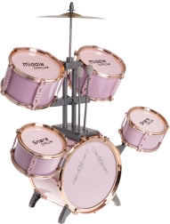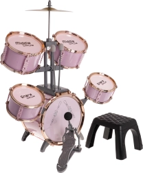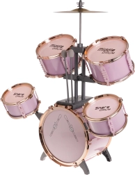 Αυτό το κομψό ροζ σετ ντραμς είναι ελαφρύ, σταθερό και σχεδιασμένο ειδικά για μικρούς ντράμερ. Χάρη στα σημειωμένα τύμπανα και τη σαφή διάταξη, τα παιδιά μαθαίνουν εύκολα τα βασικά του ρυθμού και της τεχνικής. Το μεταλλικό πιατίνι και το πεντάλ στο μεγάλο τύμπανο ενισχύουν τη ρεαλιστική εμπειρία παιχνιδιού.