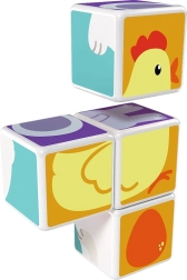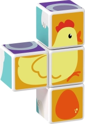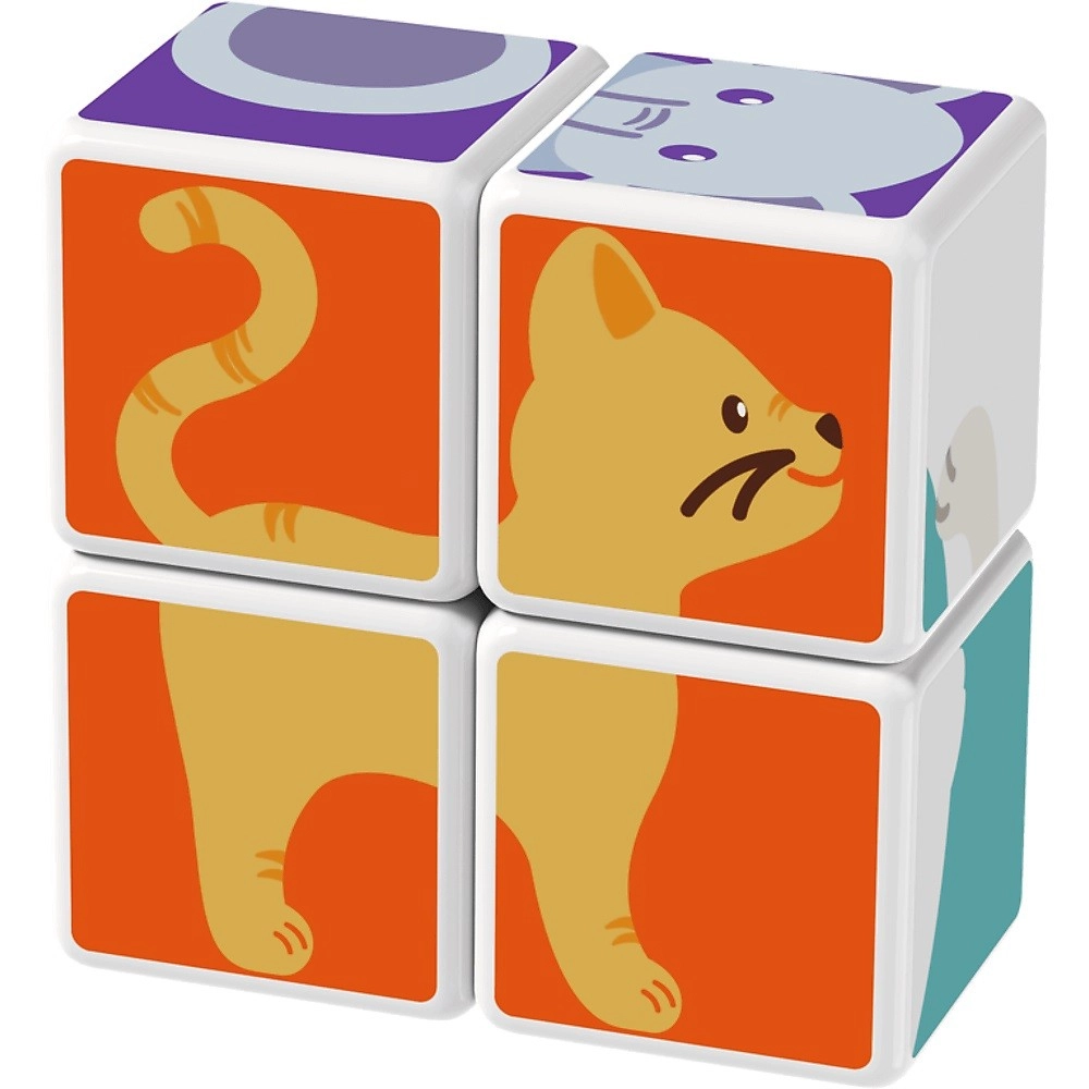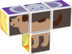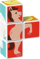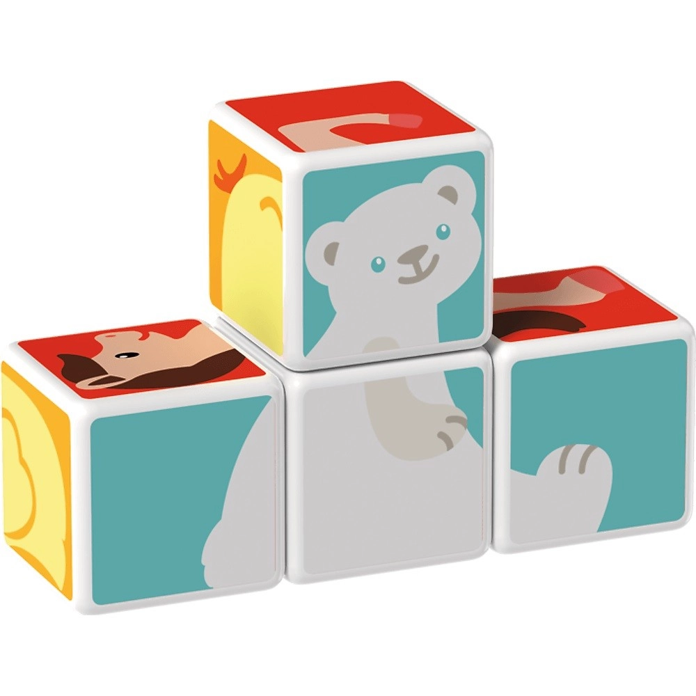 Τέσσερα μαγνητικά τουβλάκια ενώνονται από όλες τις πλευρές και επιτρέπουν στα παιδιά να συναρμολογούν εύκολα πλήρεις εικόνες ζωών και απλά τρισδιάστατα σχήματα.