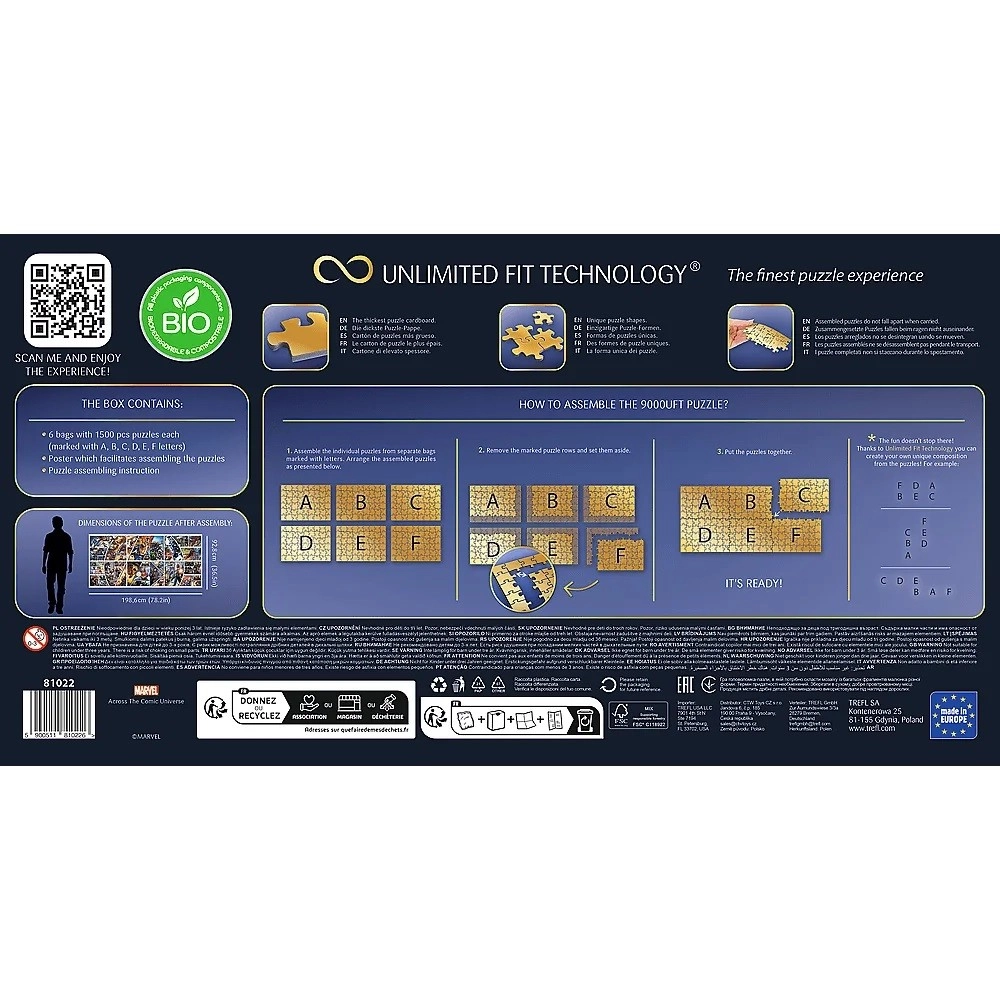 6 υποπαζλ (το καθένα με 1500 κομμάτια) μπορείτε να τα ενώσετε σε μια γιγαντιαία εικόνα σύμφωνα με την επισυναπτόμενη αφίσα ή να χρησιμοποιήσετε τη φαντασία σας και να δημιουργήσετε τη δική σας σύνθεση! Τα παζλ είναι εξαιρετική άσκηση μνήμης, ανάπτυξης δεξιοτήτων λεπτής κινητικότητας και εξάσκησης συγκέντρωσης, υπομονής και παρατηρητικότητας. Ιδανικό δώρο για λάτρεις των παζλ, ενήλικες και παιδιά άνω των 12 ετών. Οι συνολικές διαστάσεις της σύνθεσης σύμφωνα με την πρότασή μας είναι 198,6 x 92,8 εκ*.