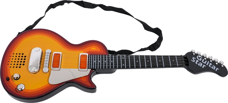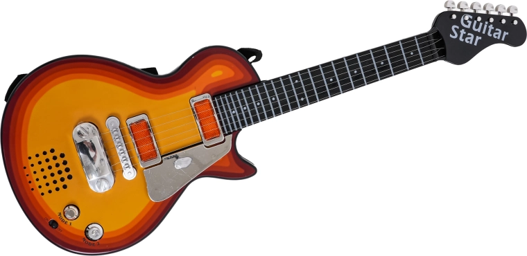 Αυτή η παιδική ηλεκτρική κιθάρα είναι ιδανική επιλογή για μικρούς ροκ σταρ. Επιτρέπει τόσο την αναπαραγωγή έτοιμου ροκ υποβάθρου όσο και το δικό τους παίξιμο – με το άγγιγμα των μεταλλικών χορδών η κιθάρα παράγει ήχο. Το περιλαμβανόμενο headset με ακουστικά και μικρόφωνο συνδέεται απευθείας στην κιθάρα, ώστε το παιδί να μπορεί να τραγουδά και να παίζει ταυτόχρονα.