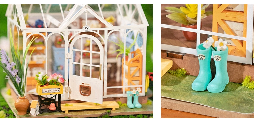 Αυτό το μοντέλο θερμοκηπίου είναι κατασκευασμένο με απίστευτη ακρίβεια, περιλαμβάνοντας μικρά διακοσμητικά αντικείμενα και κηπουρικά εργαλεία που χαρίζουν στο μοντέλο ρεαλιστική εμφάνιση.