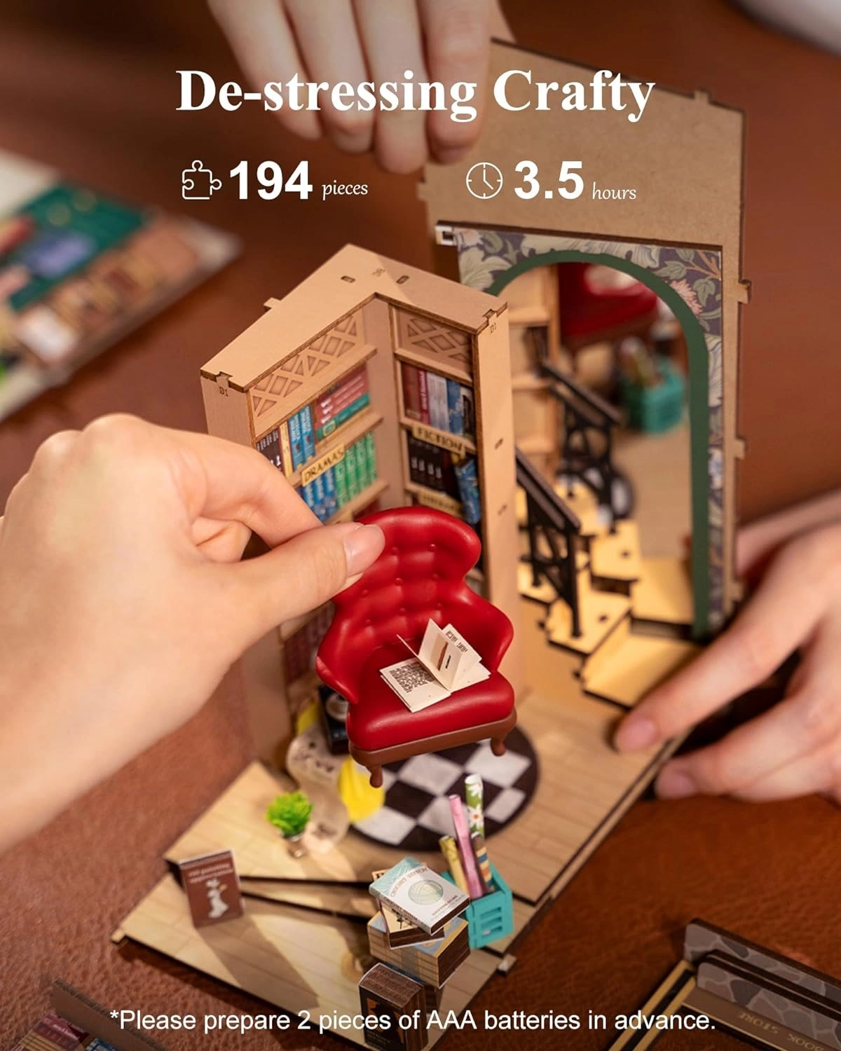 Με το σετ RoboTime μπορείτε να δημιουργήσετε ένα ήρεμο και άνετο περιβάλλον για ανάγνωση. Η συναρμολόγηση του βιβλιοπωλείου είναι μια εξαιρετική δραστηριότητα για όλη την οικογένεια, όπου ο καθένας μπορεί να συμβάλει στη δημιουργία αυτού του μοναδικού χώρου. Αυτό το προϊόν είναι ένα υπέροχο δώρο για κάθε λάτρη των βιβλίων και του ρετρό σχεδιασμού.