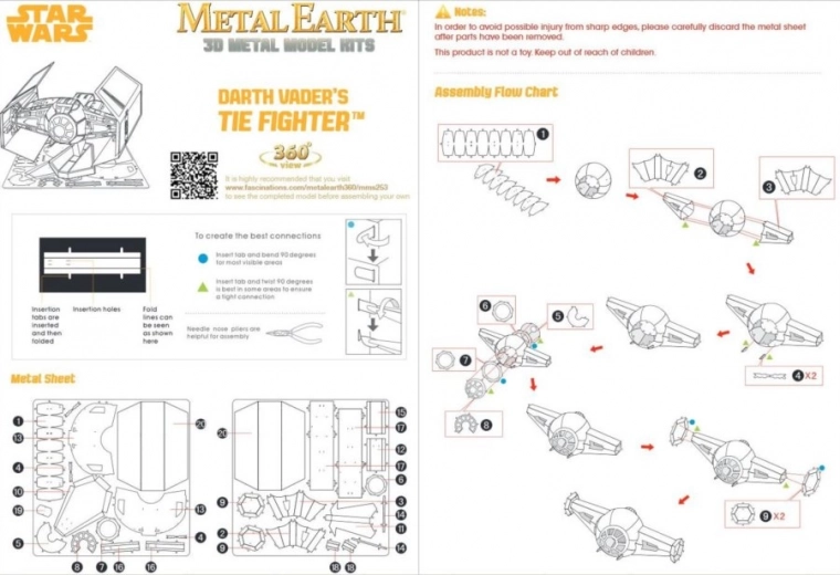 Η συσκευασία περιλαμβάνει δύο χαλύβδινα φύλλα με τα κομμάτια και οδηγίες συναρμολόγησης. Τα εργαλεία δεν περιλαμβάνονται.