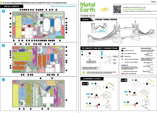 Το premium σετ μεταλλικών 3D παζλ METAL EARTH αποδίδει πιστά το TOWER BRIDGE με τους χαρακτηριστικούς πύργους και τους ανυψούμενους καταπέλτες. Χάρη στη χάραξη λέιζερ αναδεικνύονται ρεαλιστικές υφές και αρχιτεκτονικά στοιχεία, κάνοντας το μοντέλο εντυπωσιακό κομμάτι για ράφι ή βιτρίνα.