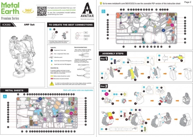 Η premium σειρά της Metal Earth προσφέρει το ρεαλιστικό μοντέλο AMP Suit από το σύμπαν του Avatar, κομμένο από φύλλα χάλυβα με χάραξη λέιζερ. Κάθε κομμάτι εφαρμόζει με ακρίβεια στο επόμενο, ώστε χωρίς κόλλα ή κόλληση να δημιουργήσετε ένα εντυπωσιακό συλλεκτικό κομμάτι με αυθεντικές λεπτομέρειες και χαρακτηριστική στρατιωτική εμφάνιση.