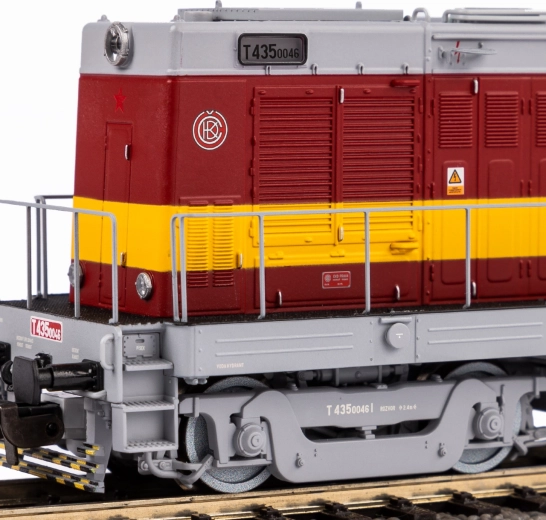Ανακαλύψτε ένα επιμελές μοντέλο της τετραξονικής ντιζελοηλεκτρικής μηχανής T 435 «Hektor» σε διαμόρφωση ČSD, εποχή IV. Χάρη στην κορυφαία βαφή, την εκλεπτυσμένη εκτύπωση και το πιστό εσωτερικό θαλάμου, το μοντέλο δείχνει εξαιρετικά ρεαλιστικό. Διαφορετικά φορεία που αντιστοιχούν σε παλαιότερες και νεότερες σειρές, λεπτομερές σύστημα φρένων και πλούσια παρελκόμενα (κουπαστές, καλωδίωση οροφής, σύστημα ψύξης) υπογραμμίζουν την αυθεντική εμφάνιση.