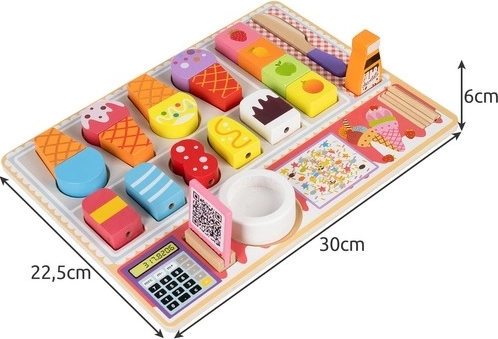 Το ανθεκτικό ξύλινο υλικό είναι μακράς διάρκειας και φιλικό προς το περιβάλλον. Το σετ είναι ιδανικό για παιχνίδια ρόλων – πώληση, «σκανάρισμα», πληρωμή – και αναπτύσσει την επικοινωνία και τις βασικές αριθμητικές δεξιότητες. Η κομψή συσκευασία το καθιστά ένα υπέροχο δώρο.