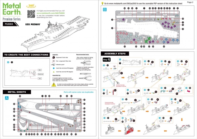 Ανακαλύψτε τον συναρπαστικό κόσμο των μεταλλικών 3D μοντέλων με το premium σετ METAL EARTH: το αεροπλανοφόρο USS MIDWAY. Από λεπτά ατσάλινα φύλλα, με ακριβείς καμπύλες και κλειδώματα κουμπώματος, δημιουργείτε ένα ρεαλιστικό αντίγραφο του θρυλικού πλοίου με λεπτές υφές και σημάνσεις καταστρώματος. Χάρη στο laser χάραγμα αναδεικνύονται και οι πιο μικρές λεπτομέρειες.
