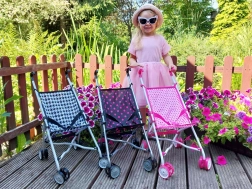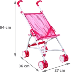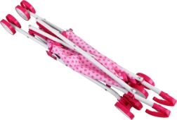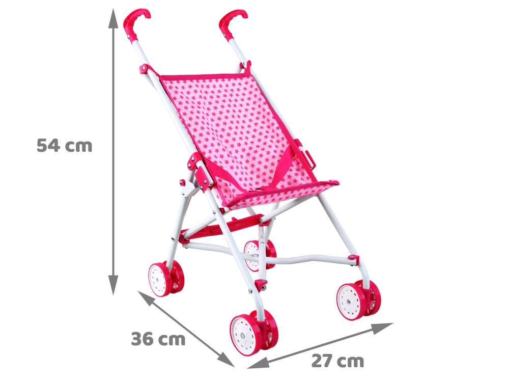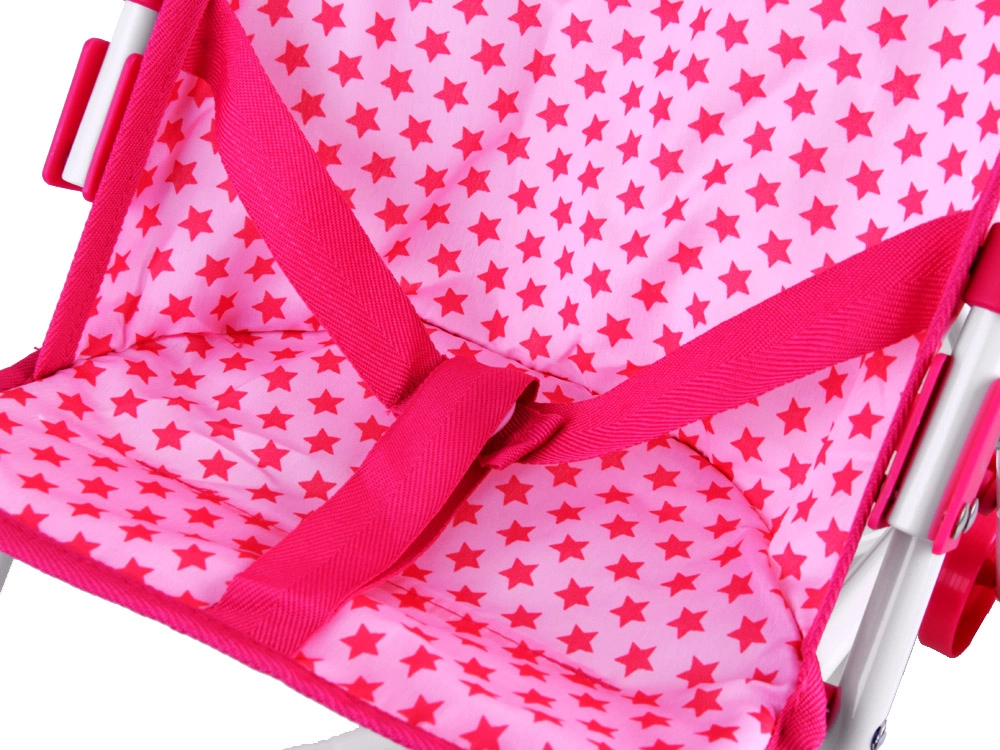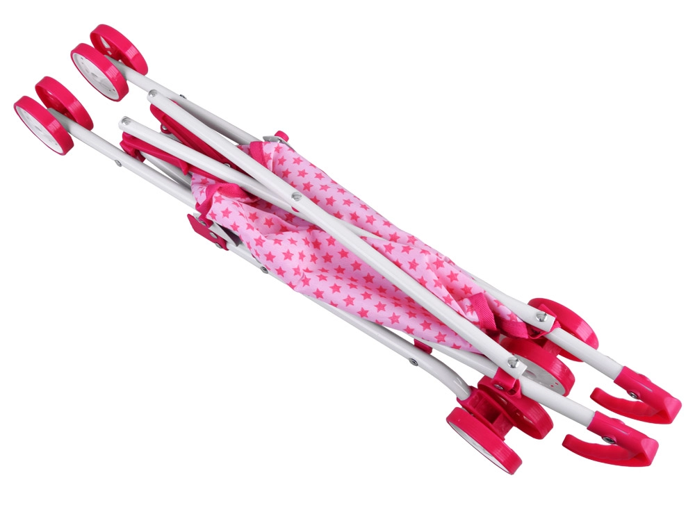 Το καροτσάκι για κούκλες έχει σχεδιαστεί ώστε να προσφέρει μια αξέχαστη εμπειρία παιχνιδιού. Χάρη στην ελαφριά κατασκευή του και το εύκολο δίπλωμα/άνοιγμα, μεταφέρεται και αποθηκεύεται με ευκολία. Ο ροζ σχεδιασμός με αστεράκια χαρίζει στο καροτσάκι μια γοητεία που θα εκτιμήσει κάθε μικρή φροντιστής.