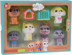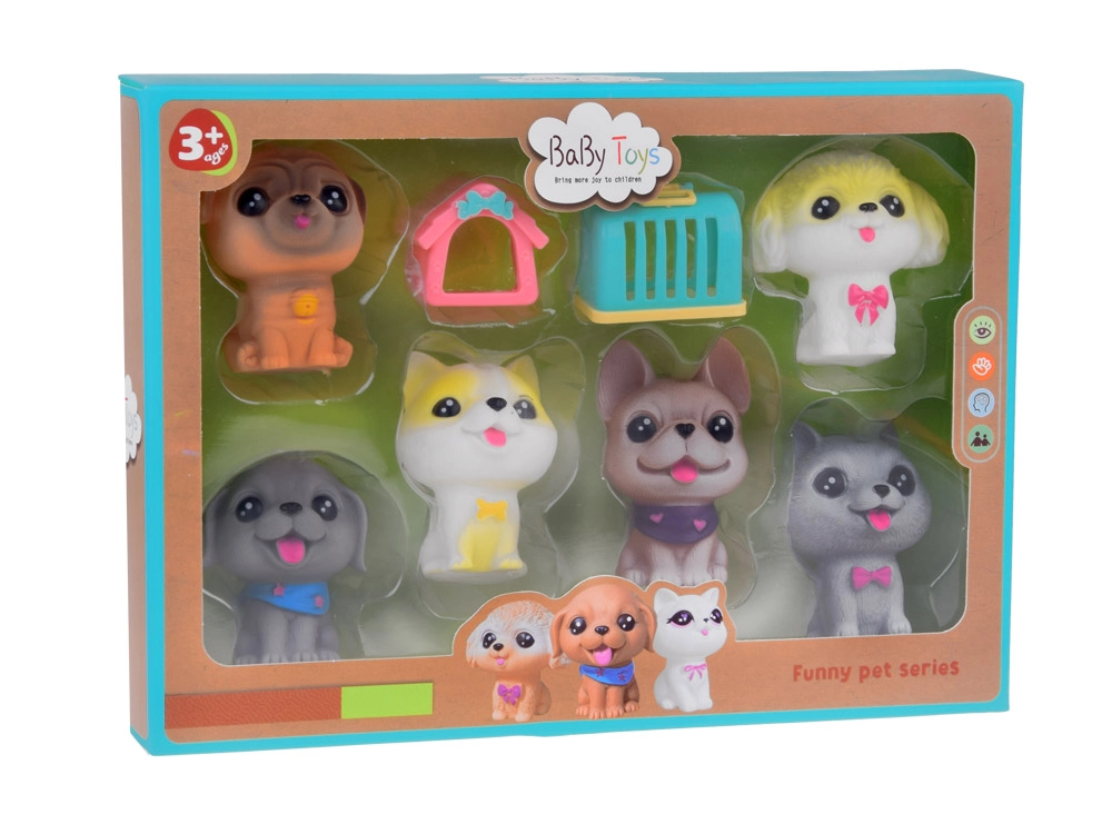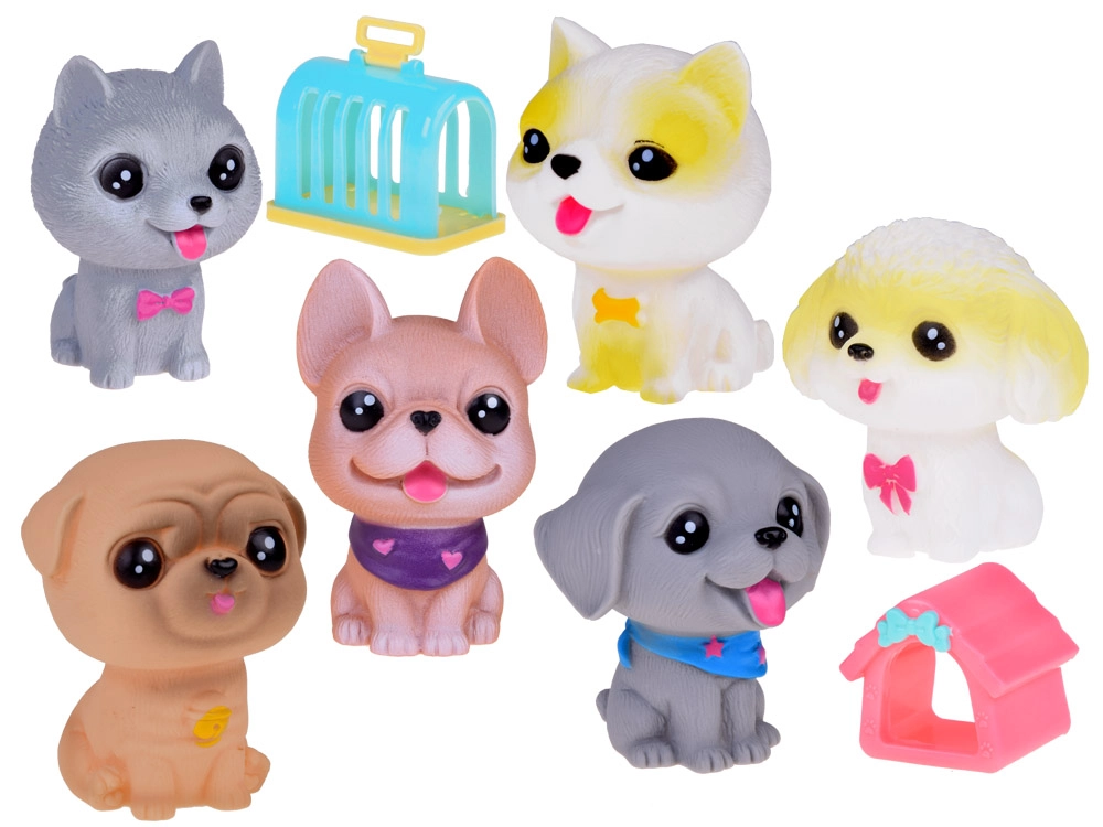 Το σετ των έξι χαριτωμένων λαστιχένιων σκυλάκων είναι το τέλειο συμπλήρωμα για κάθε παιδί που αγαπά τα ζώα. Θα τα χρησιμοποιήσει σε παιχνίδι κομμωτηρίου σκύλων, ξενοδοχείου για σκύλους, νηπιαγωγείου για κουτάβια ή κτηνιατρείου. Χάρη στην απαλή κατασκευή τους και τις ρεαλιστικές λεπτομέρειες όπως τα μεγάλα ματάκια και οι γλυκές εκφράσεις, αυτές οι φιγούρες είναι ακαταμάχητες.