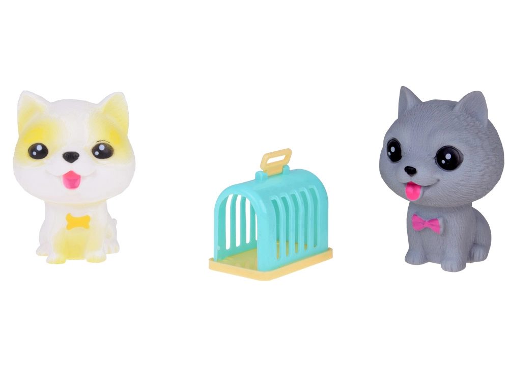 Κάθε σκυλάκι, όταν το πιέζετε, βγάζει αστείο σφύριγμα και στο κάτω μέρος έχει μια μικρή οπή. Το σετ περιλαμβάνει διάφορες ράτσες όπως μπουλντόγκ, σίμπα ίνου, κανίς, βεϊμαρανερ, παγκ και κοντότριχο τσιουάουα, καθεμία με τα δικά της αξιολάτρευτα αξεσουάρ. Επιπλέον περιλαμβάνει μίνι σπιτάκι και μεταφορέα.