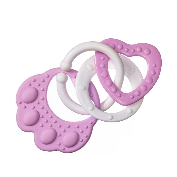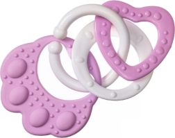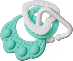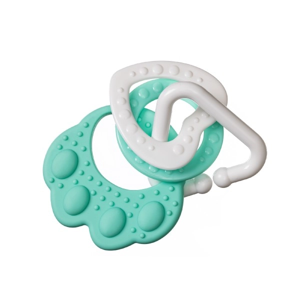 Το μασητικό μας σε σχήμα πατούσας αρκούδας είναι ιδανικό για μικρούς εξερευνητές. Οι ειδικά σχεδιασμένες φόρμες χωρίς αιχμηρές άκρες εξασφαλίζουν ασφαλή χρήση. Τα προσαρτημένα πλαστικά σχήματα, όπως κυκλάκια, καρδούλες και κουδουνάκια, προσφέρουν όχι μόνο διασκέδαση αλλά και την απαραίτητη ανακούφιση από τον πόνο των δοντιών.