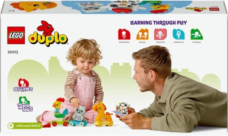 Το σετ περιλαμβάνει 4 ζωάκια για κατασκευή (κόκορας, άλογο, προβατάκι και αγελαδίτσα) και 3 ανθεκτικά βαγονάκια που συνδέονται εύκολα. Τα μεγάλα, στρογγυλεμένα κομμάτια DUPLO είναι ασφαλή και ιδανικά για μικρά χεράκια. Οι γονείς μπορούν να συμμετέχουν εύκολα και να υποστηρίξουν ελεύθερο παιχνίδι, έκφραση και εξερεύνηση του κόσμου.