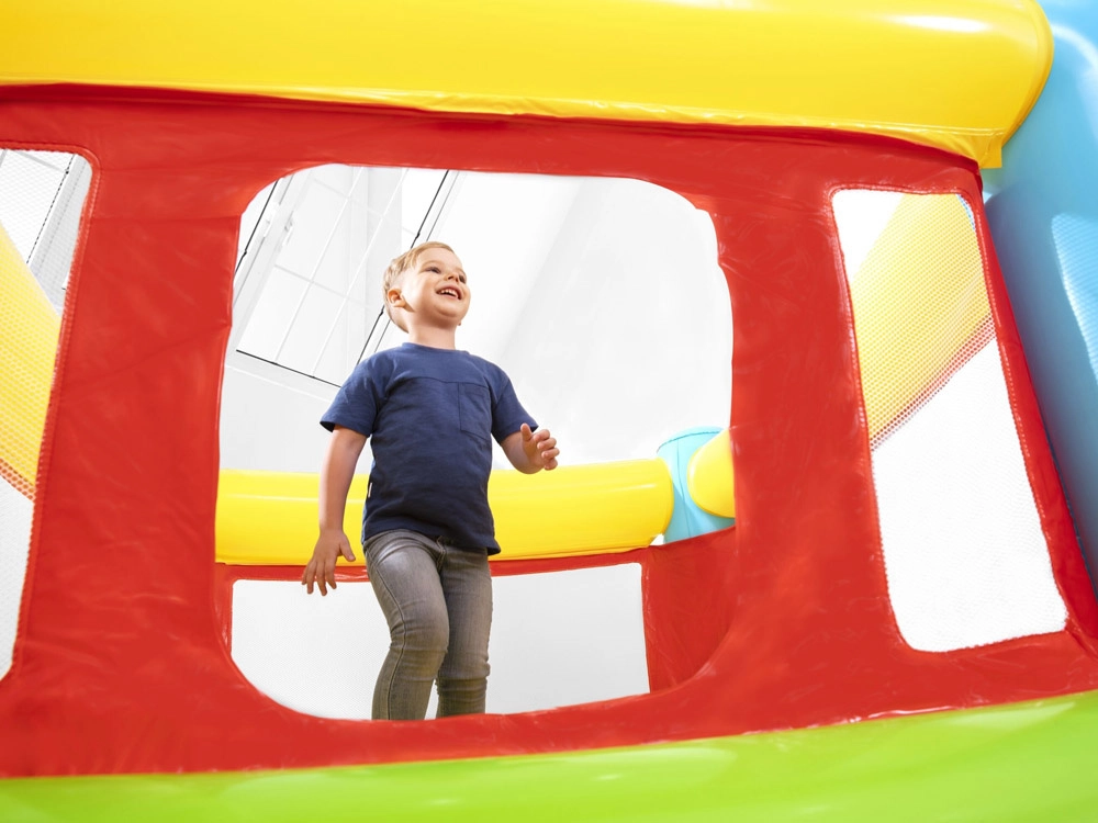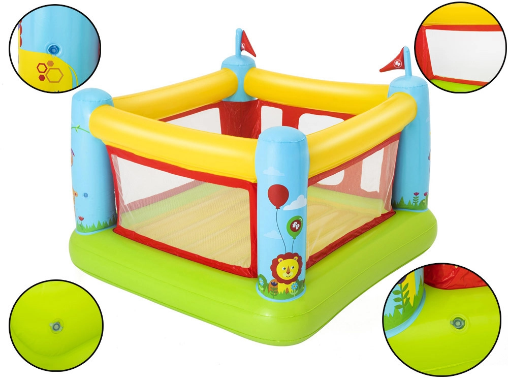 Το φουσκωτό κάστρο Bestway FISHER‑PRICE δημιουργεί έναν ασφαλή και άνετο χώρο για πήδημα, παιχνίδι και ελεύθερη δραστηριότητα. Τα διάφανα δικτυωτά πάνελ εξασφαλίζουν καλή ορατότητα και ροή αέρα, ενώ οι μαλακοί φουσκωτοί τοίχοι και το δάπεδο απορροφούν τις προσγειώσεις. Χάρη στις συμπαγείς διαστάσεις του ταιριάζει στους περισσότερους παιδικούς χώρους, στη βεράντα ή στον κήπο.