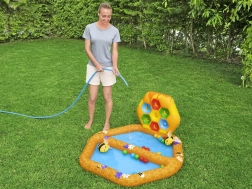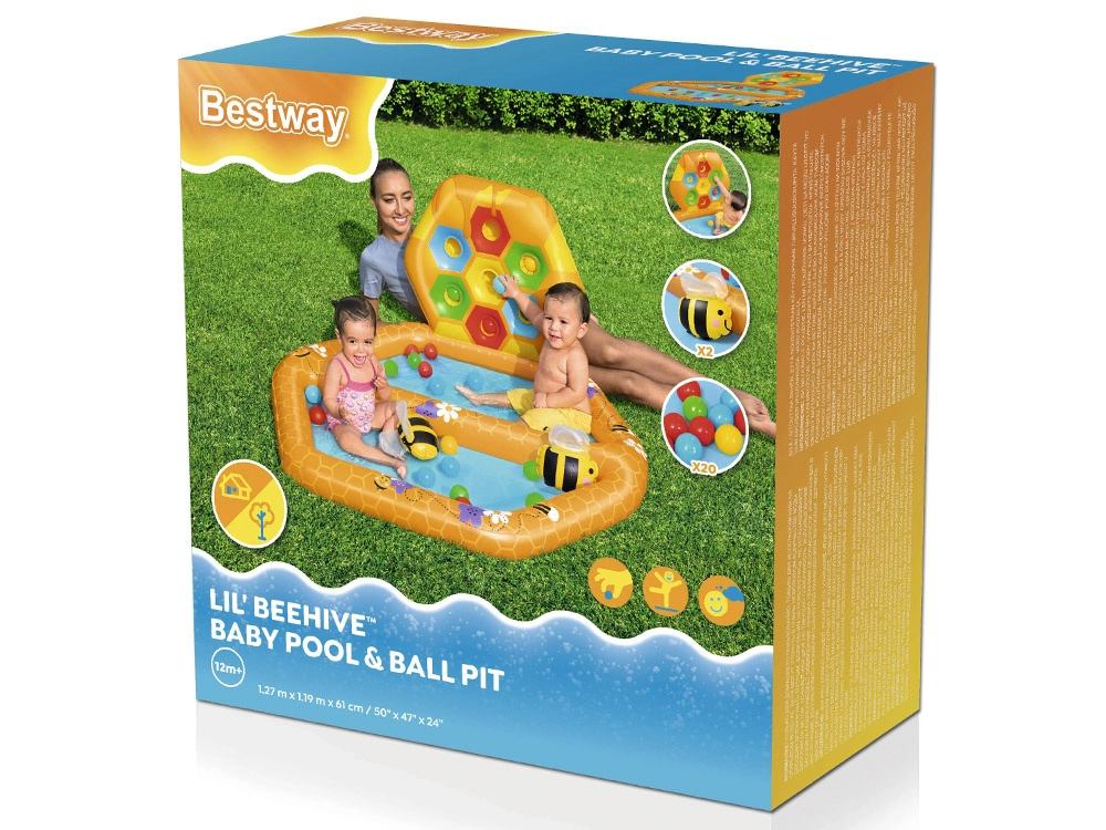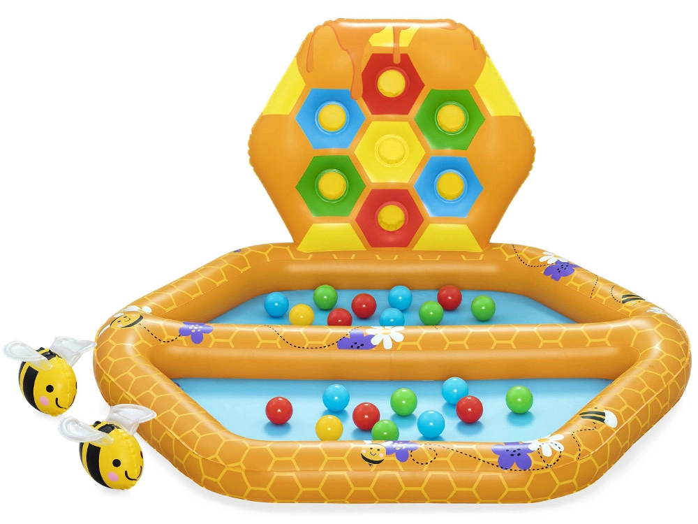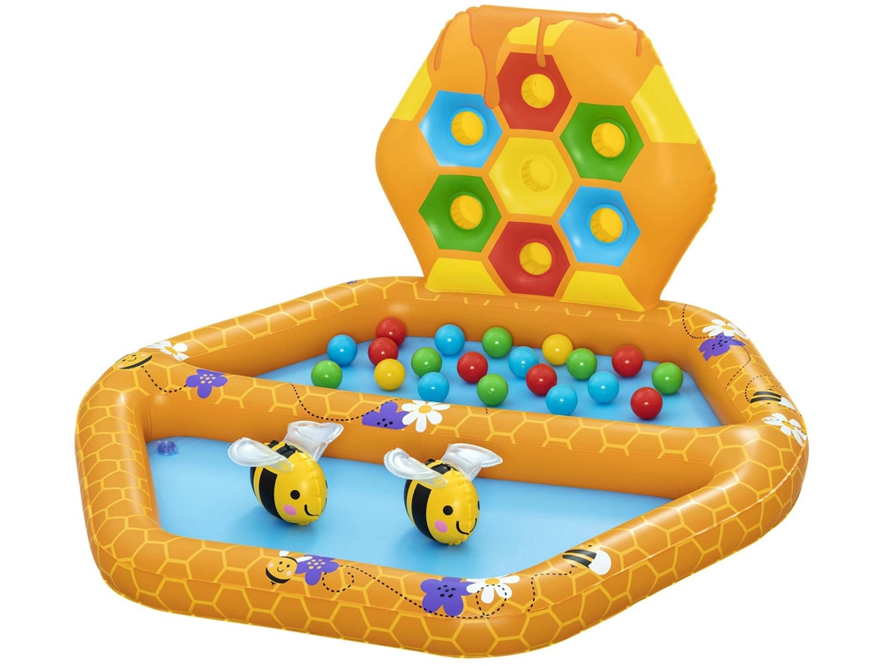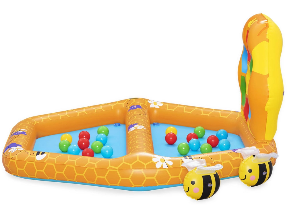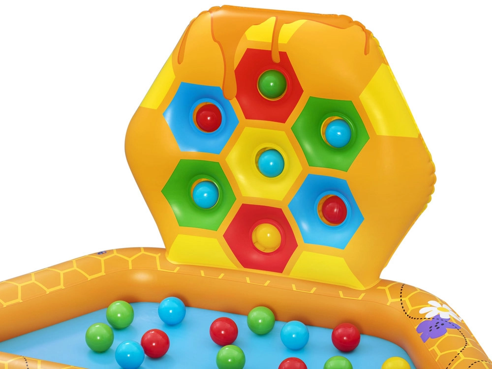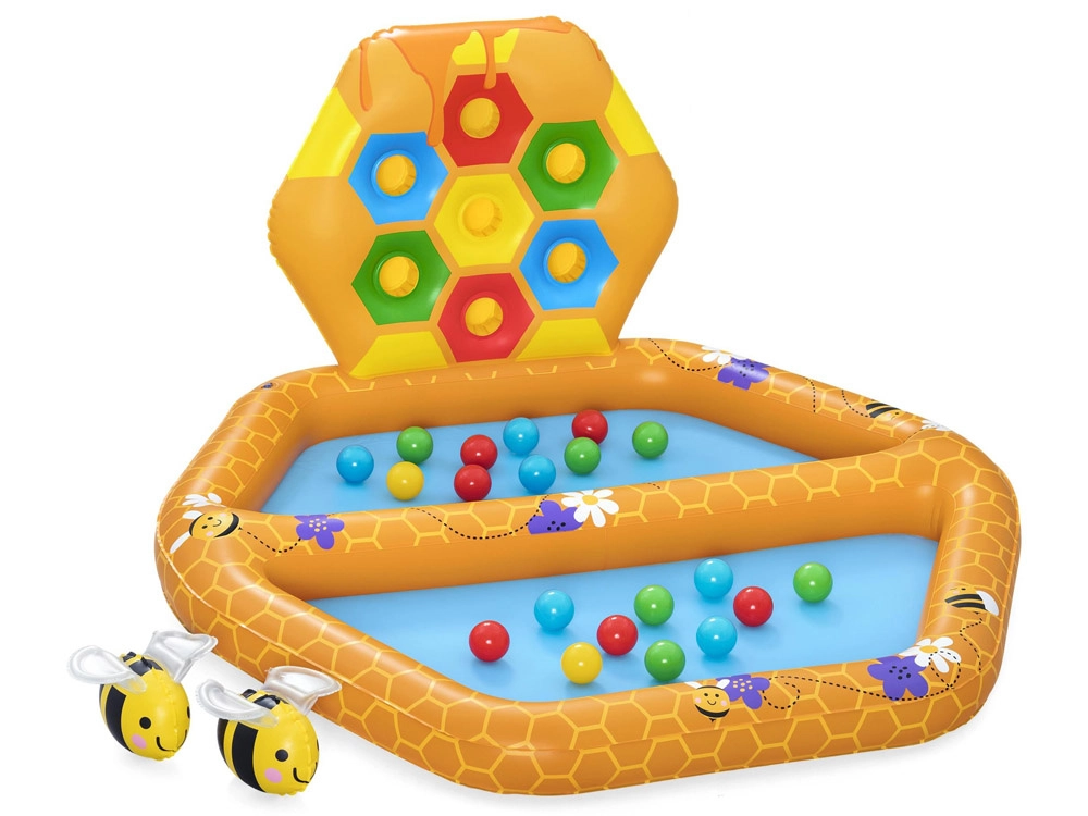 - Μοτίβο κυψέλης: Η πισίνα και τα τοιχώματα είναι σχεδιασμένα με μοτίβο κερήθρας και μελισσών, που τραβά την προσοχή και διεγείρει τις αισθήσεις των παιδιών.
